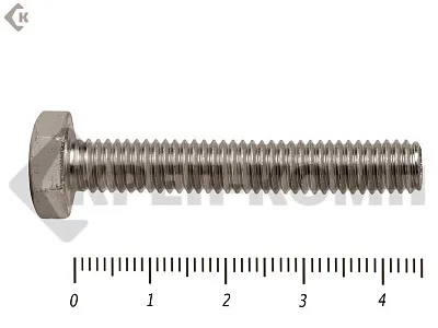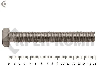 Болт DIN 933 с шестигранной головкой и полной резьбой, выполнены из нержавающей стали. Такие болты могут применяться как для внутренних работ, так и для внешних, в агрессивных средах. Диаметр резьбы болтов от М3 до М64, длина болтов от 12 до 950 мм. Болты DIN 933 применяются для соединения и крепления деталей и конструкций в строительстве и машиностроении.